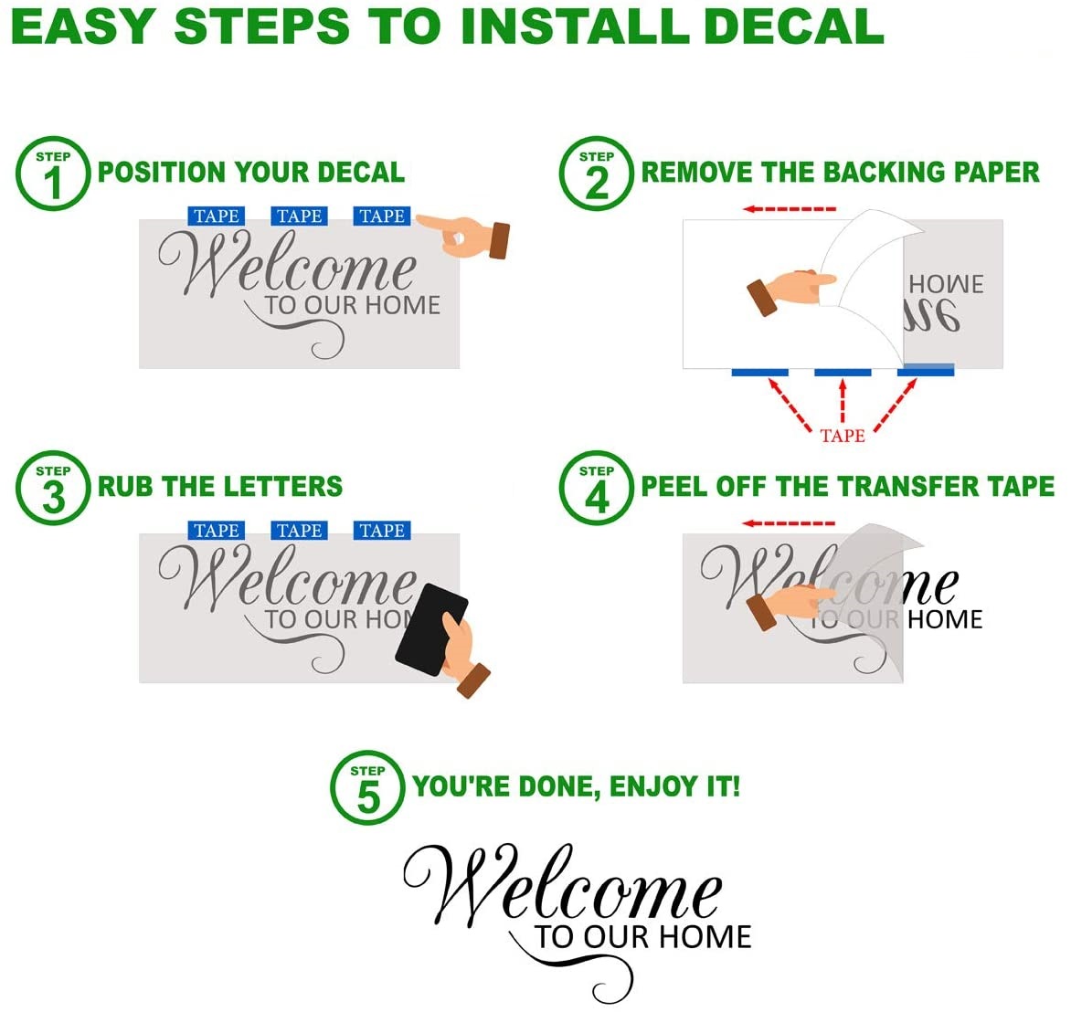 - Can be applied to wood as well as glass doors or any smooth surface.