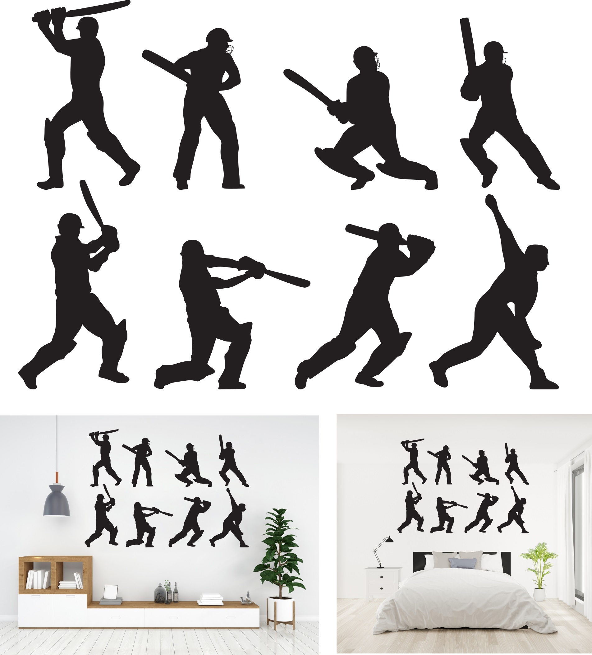 Cricket Player - Sports Wall Decals Stickers Set