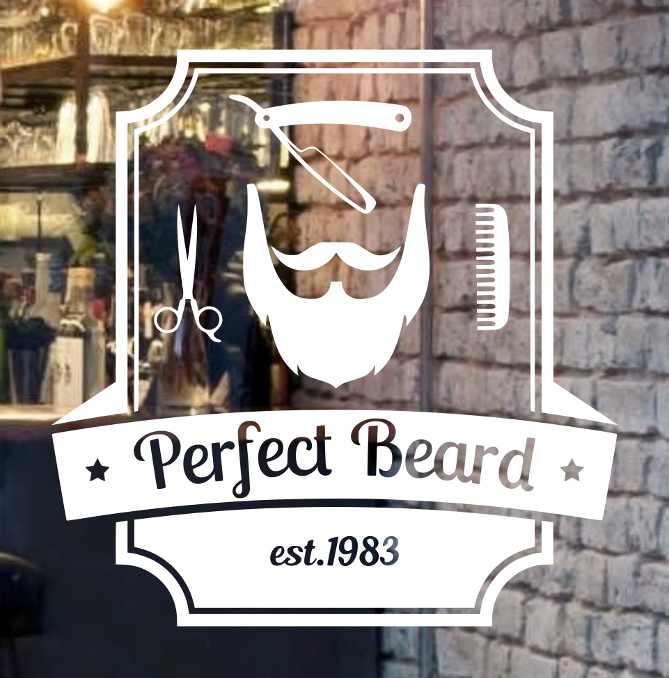 Customized Perfect Beard Logo - Hair Salon Spa Glass Door Wall Stickers Decals Signs