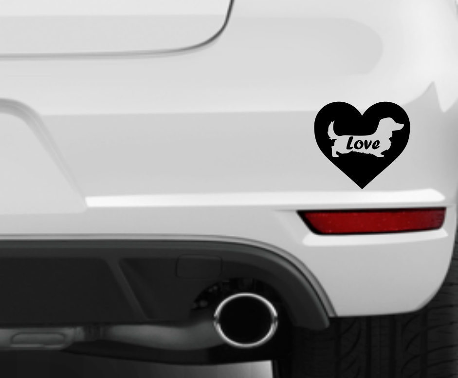 Dachshund Car Decal Love Heart Sticker Vinyl Die Cut