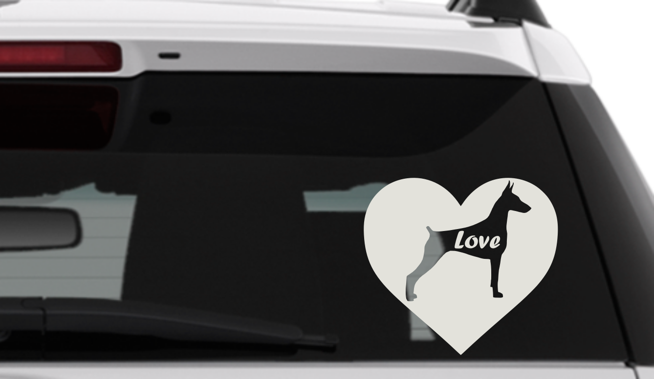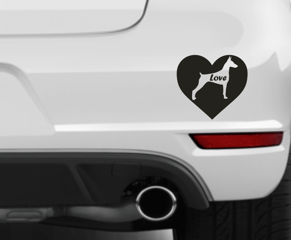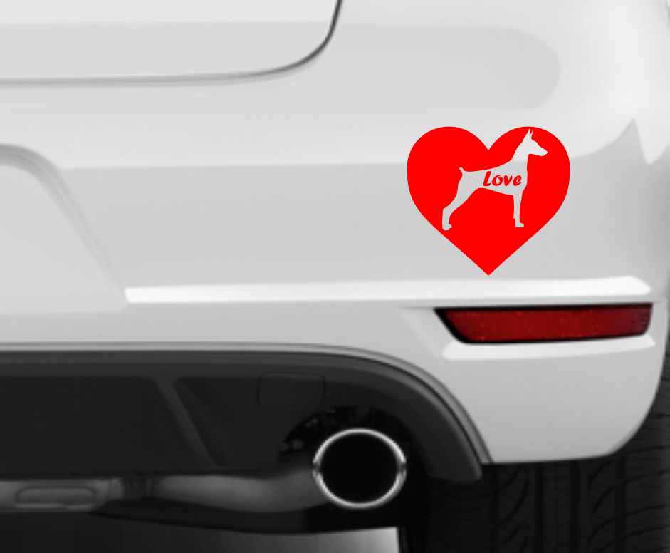Dobermann Car Decal Love Heart Dog Puppy Sticker Vinyl Die Cut