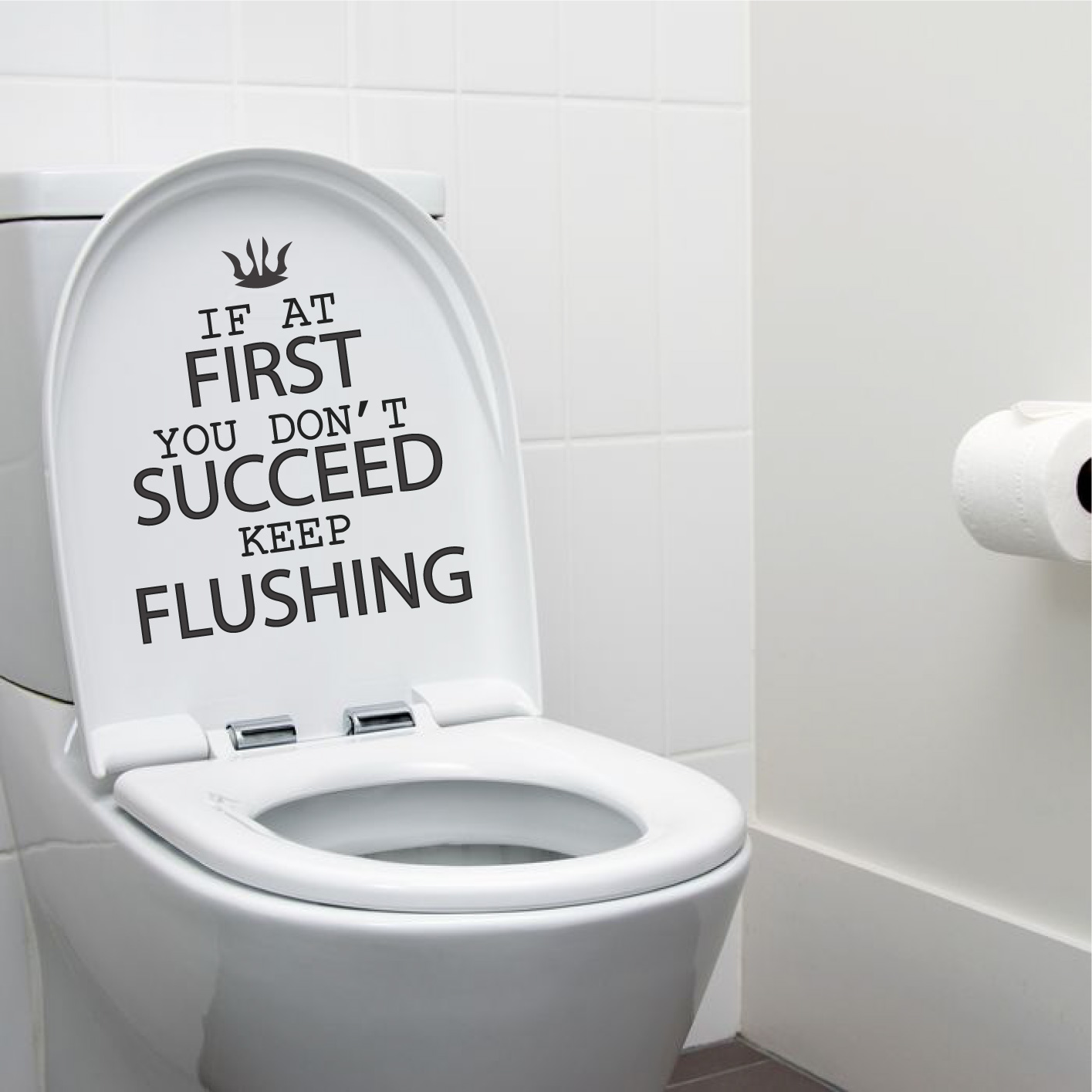 Funny Toilet Bathroom Decal Sticker - If at First You Don't Succeed Keep Flushing