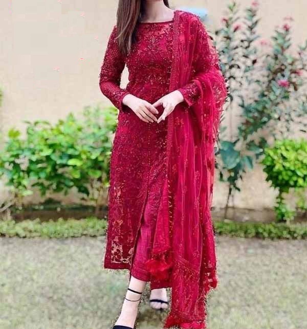 - Stitched Embroidered Net Dresses in Pakistan