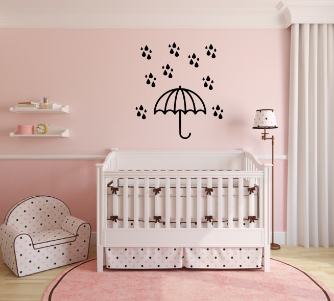 Reviews - Kids Wall Decals Stickers - Umbrella Rain Drops Theme