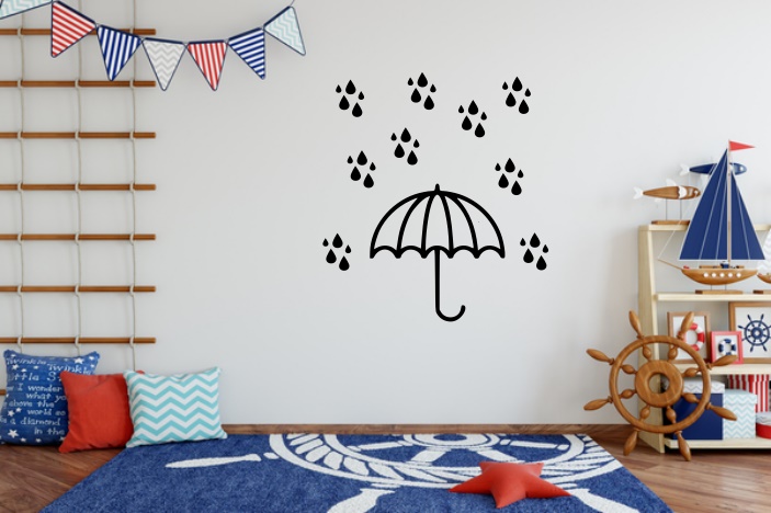 Kids Wall Decals Stickers - Umbrella Rain Drops Theme