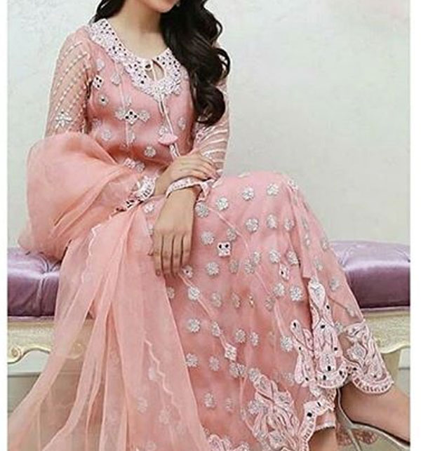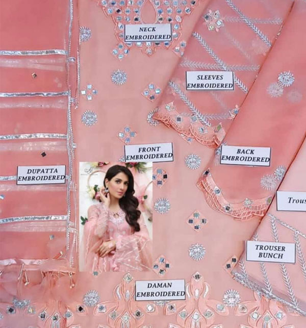 Organza Heavy Embroidery Dress Peach Pink (Stitched)