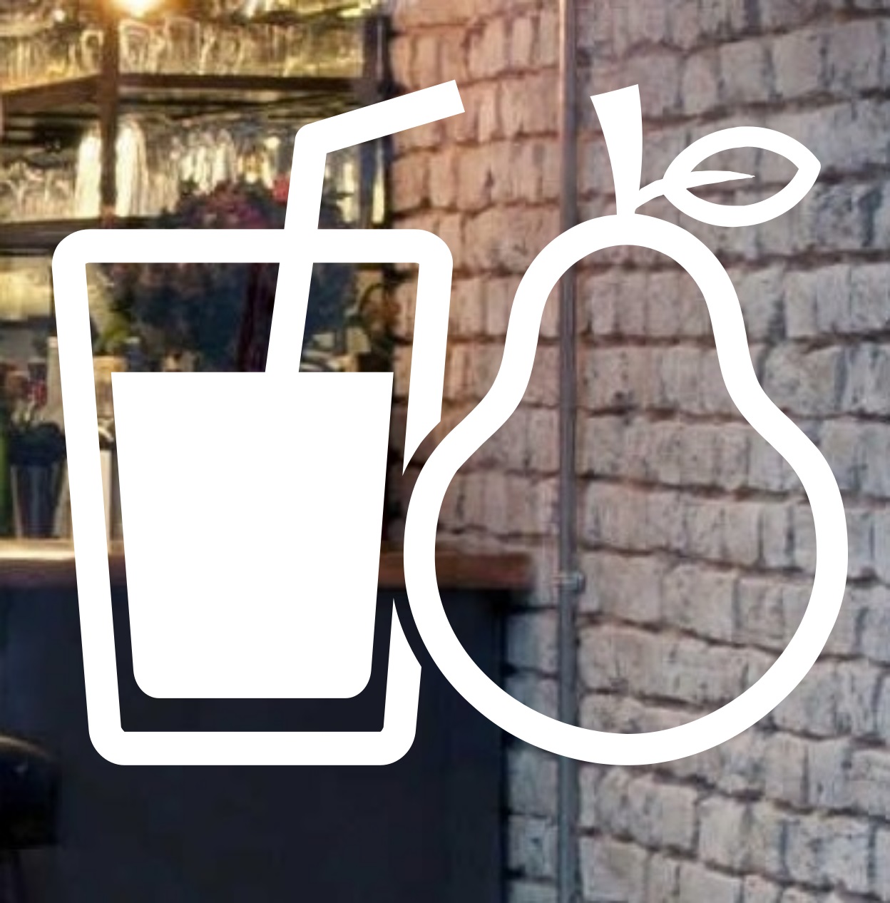 Pear Drink - Juice Bar - Restaurant Glass Window Wall Door Stickers Decals