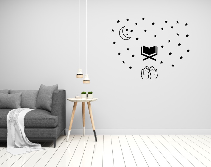 Reviews - Quran Praying Hands Moon Star Islamic Theme - Muslims Wall Decal Stickers