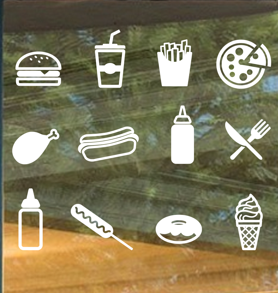Reviews - Set of Fast Food Icons - Restaurant Window Stickers Decals Signs