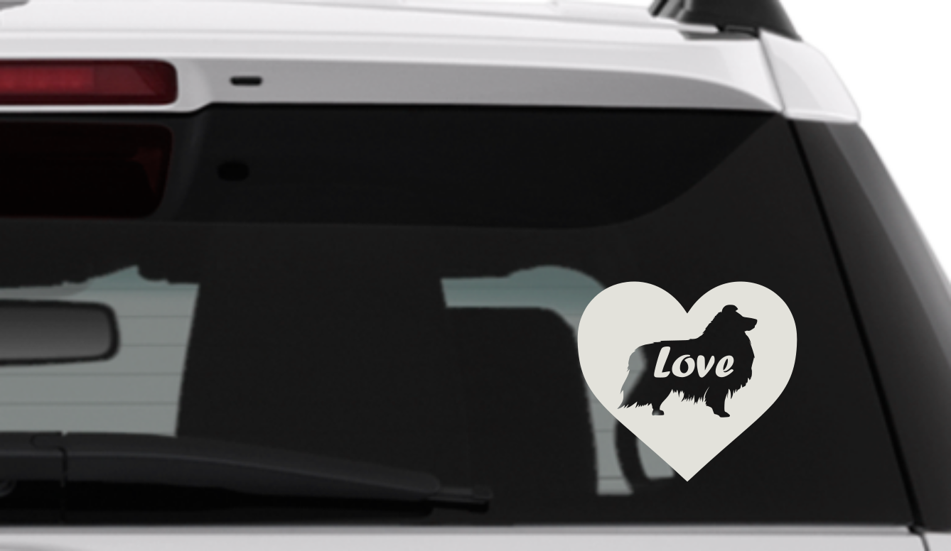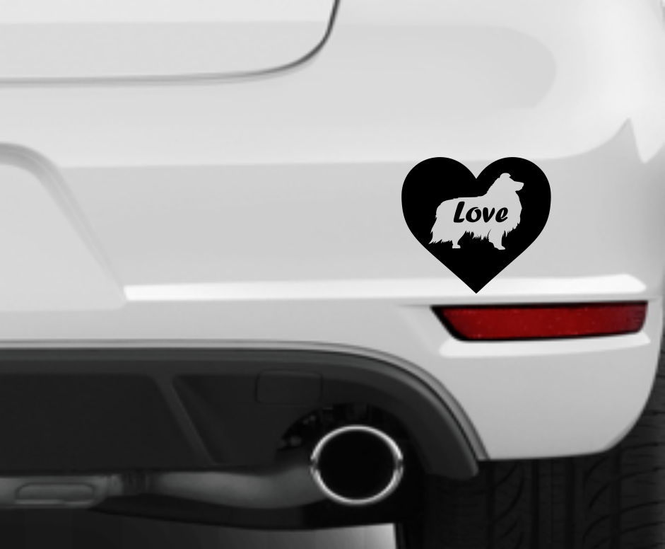 Sheltie Car Decal Love Heart Puppy Sticker Vinyl Die Cut