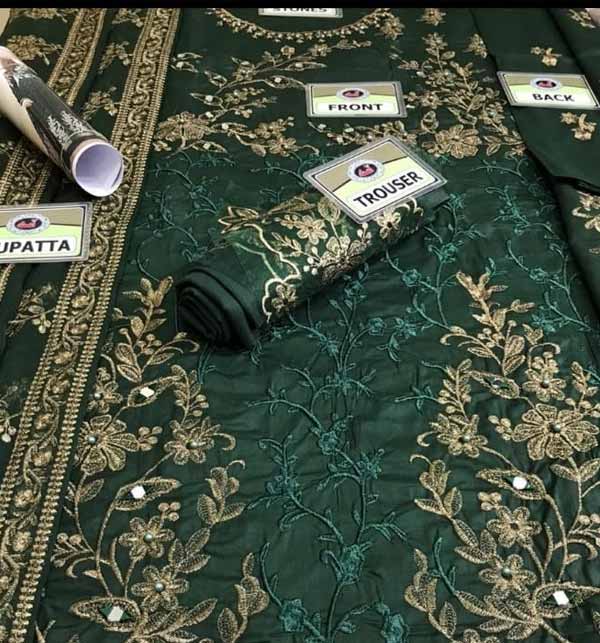 - Heavy Embroidered Chiffon Front & Back Body